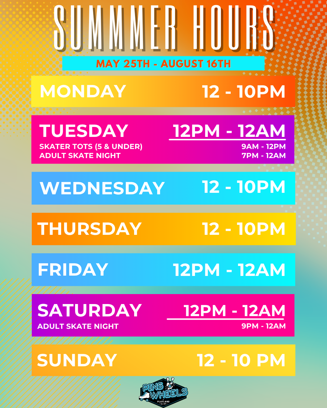 Don’t miss a moment- Stay up to date with everything happening at Pins & WHeels