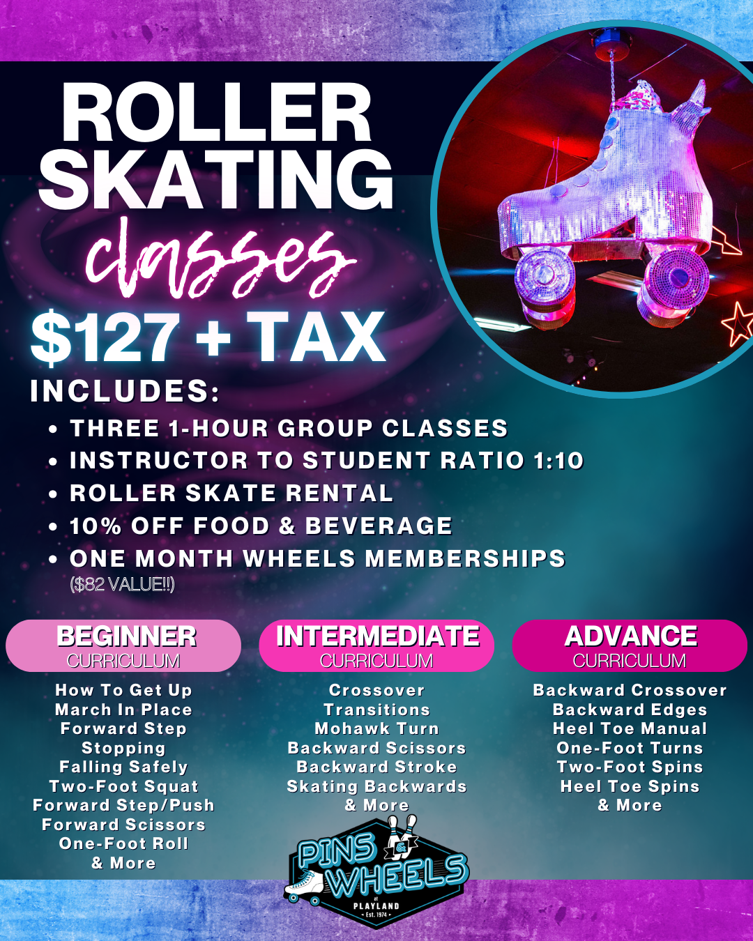 February dates: 1st, 8th, and 15th. Reserve your spot and sign up for our next round of skate classes!